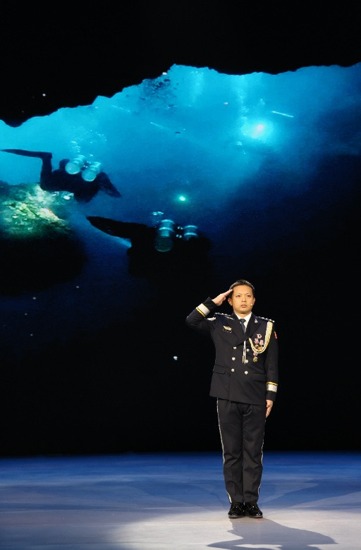 闫明在2025“最美基层民警”发布仪式现场讲述水下救人故事。