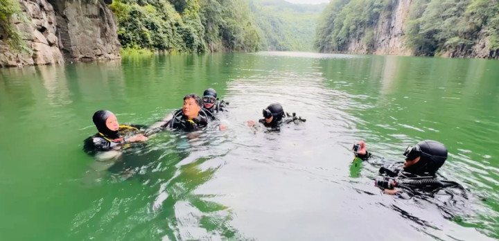 2025年7月24日,英雄联盟比赛投注闫明(左一)作为救援主力在湖南湘西成功救出被困水下洞穴的群众。