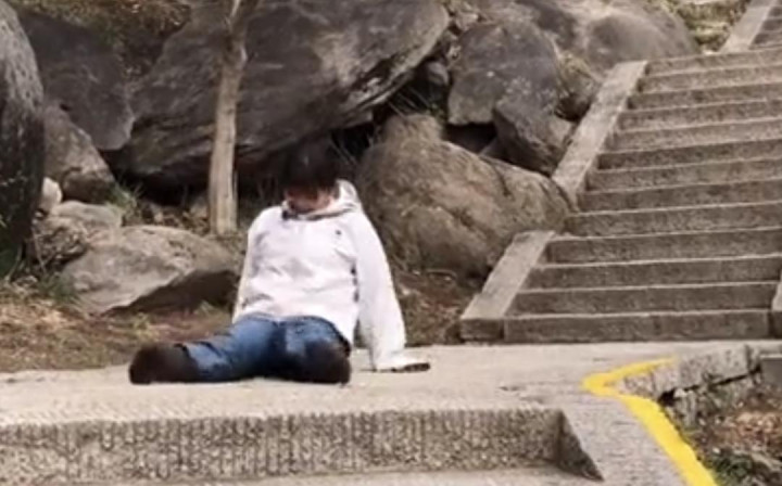 “泰山雄奇,崂山给东谈主嗅觉是善良的家乡山,然则登攀的悔恨进度对我来说少许不比泰山小。”3月19日是李子萱登顶崂山后的第一天,手上的伤口莫得皆备痂皮,脚踝处磨得红肿破皮仍然可见。谈及这次登攀崂山的资格,这个看似柔弱的女孩,口吻里尽是坚定与释然。这次李子萱采取的是崂山太清宫——明霞洞清澈,对于鄙俚东谈主来说这条清澈全程走路大约需要3-4小时。对于高位截瘫、只可依靠双手相沿身体前行的李子萱来说,这无疑是一场极致的挑战。更具难度的是时刻,崂山景区下昼四点半会清山,这意味着她必须在有限时刻内合理计议行程。