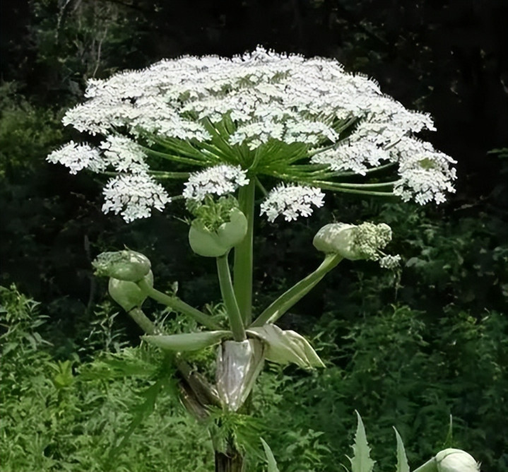 这株草的名字叫大豕草,学名Heracleum mantegazzianum,英文名叫Giant Hogweed。在西洋十几个国度,老匹夫给它起了个更直白的混名——"超等毒草"。英王法律明文写着,任何东说念主在自家花圃里种这玩意儿皆算违规,最高罚5000英镑。纽约州环保局则把它列为联邦无益杂草,要求民众看见就上报。