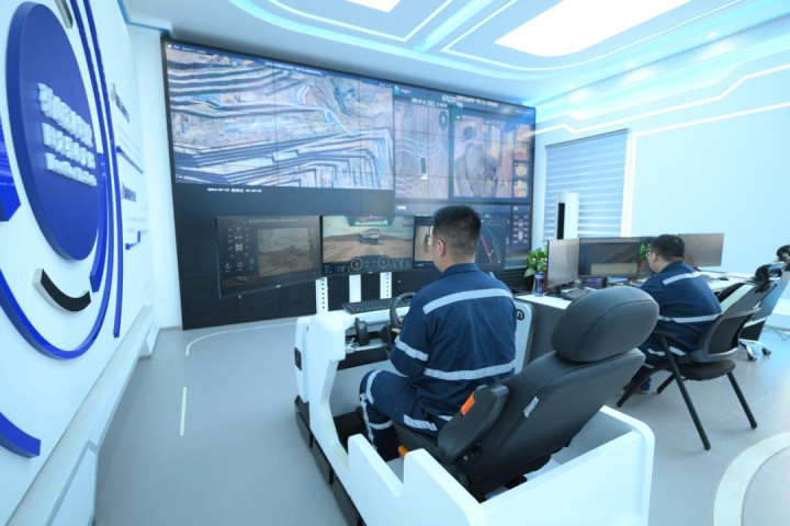 在新疆宜化矿业有限公司五彩湾矿区一号露天煤矿,173台新能源无东谈主矿卡有序功课。数公里外的中心截止室内,职责主谈主员轻点鼠标,矿区内的凿岩机器东谈主便在汉典操作下精确定位、纯真出动,完成智能探伤钻孔、破灭功课。矿山开采的“钻孔、爆破、挖装、输送、排土”等关节顺序,均在中心截止室终了全历程智能管控。