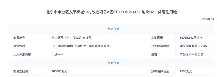 北京进深 徐迪 4月14日,丰台区太平桥城中村雠校神志A区FT00-0608-0001地块干涉用地预苦求。