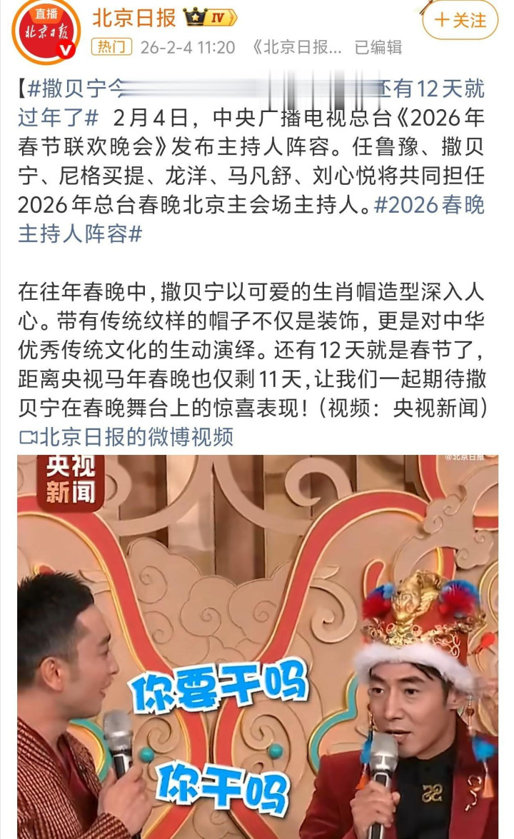 lol外围投注 正式官宣! 春晚主持界"领军人物"回归, 网友哭了, 终于等到这一天