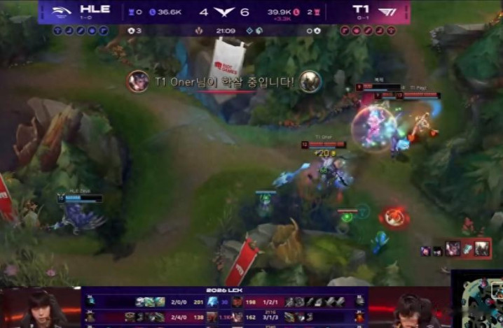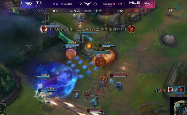 第一局比赛中,HLE将艾尼维亚扭捏到开赴,用来对阵Doran的杰斯。两边前期还算有来有回,但HLE过了对线期后就像没了脑子,不知谈该若何扩大上风。Kanavi的潘森握不到东谈主,反而一直被击杀。HLE唯一开赴还有点上风,但Zeus在团战中很难存活。Zeka的阿萝拉也哑火了,团战中挟制不到T1的后排,反而是Faker的阿兹尔和Peyz的凯特琳在无压力输出。比及T1拿到龙魂,比赛便失去了悬念。