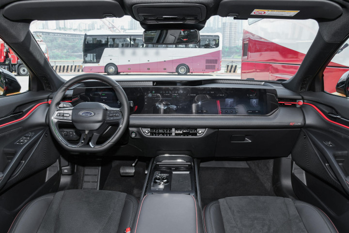 内饰部分厚重质感与实用性集合,中控台、门板等区域大面积采选软性材质包裹,搭配考究缝线,触感致密且层次感完全。座舱内最引东说念主注缠绵是 1.1 米超广域高清巨幅屏,由 12.3 英寸全液晶数字姿色盘与 27 英寸 4K 中控大屏构成,屏幕闪现明晰,操作流通,能直不雅呈现行车信息、导航、文娱等功能,莳植驾驶方便性与科技氛围。0.94 平米超大全景天窗,让车内采光更充足,视线更豁达,营造出通透舒爽的驾乘环境。车内配备多处储物空间,手机、钥匙、水杯等小物件齐能妥善舍弃,旋钮式换挡操作直爽,省俭空间的同期莳植内饰直爽度,SYNC+2.0 智行互关连统支执多种语音松手,识别精确,开车时无需分神操作,莳植行车安全。