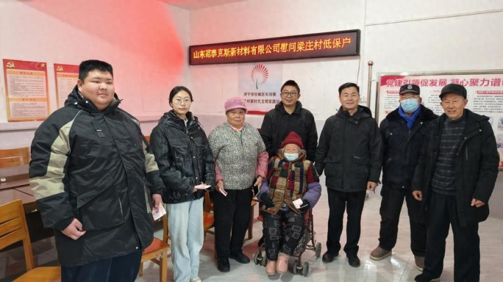 春节前夜,济宁市任城区长沟镇梁庄村村委会大院里,4户五保户连接走进大院,从山东范泰克斯新材料有限公司慎重东谈主范广外行中接过红包,掌声与谈谢声交汇成冬日里最暖的旋律。从 2010 年默然承担全村街灯电费,到为重病村民要紧捐钱,再到络续关爱贫苦群体,范广新用点滴义举,在乡村地面上勾画出企业担当的平和图景。