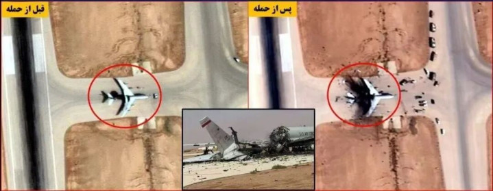 △伊朗方面公布的E-3预警机被毁坏卫星图