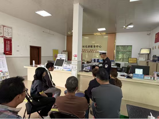 3 月 27 日,惠州市惠东县公安局交管大队走进铁涌大村村党群就业中心,开展针对性交通安全宣传行径,把安全学问送到村民家门口。