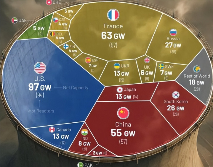 好意思国、法国、中国、俄罗斯、韩国前五大国占据了全球71%的核电装机容量。