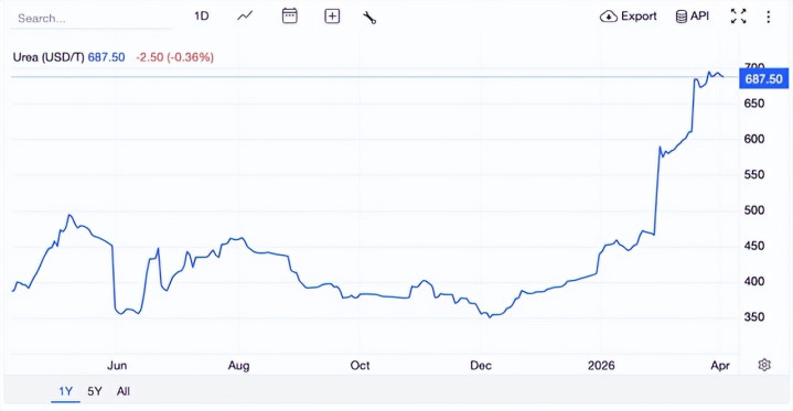 限制4月2日,国外尿素期货高涨至每吨684好意思元,为2022年10月以来的最高点,本年高涨高出70%。