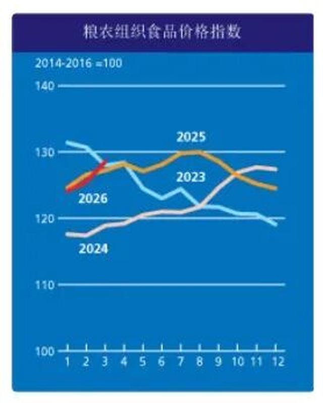 4月3日,聚首国粮农组织发布最新数据,2026年3月,全球食物价钱指数平均为128.5点,环比高涨2.4%,流畅第二个月环比高涨,同比高涨1.0%。