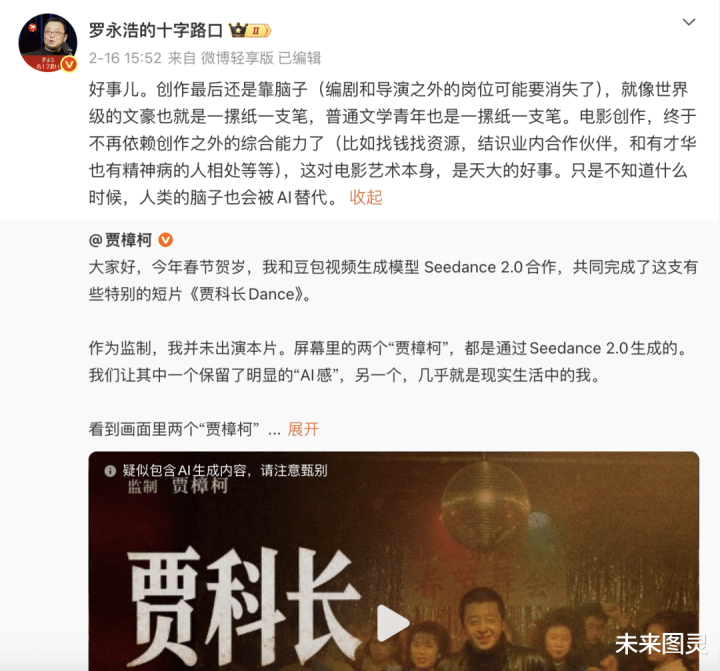 贾樟柯用Seedance 2.0生成了“第二个我方”,他说:“从短长到彩色,从无声到有声,从胶片到数码,电影用了许多年。每一次变化,齐伴跟着怀疑和不安。”
