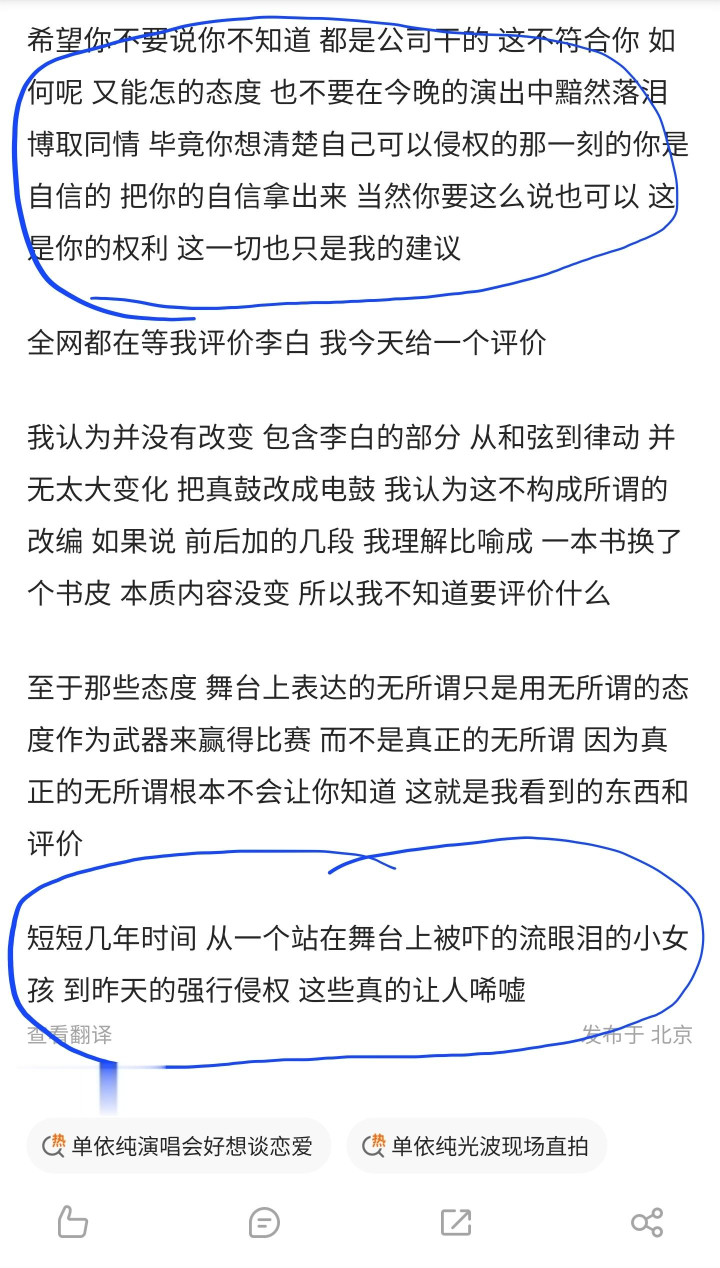 可当今呢?挑升苦求授权被明确休止了,反而敢在几万东说念主的演唱会上强行演唱,这不是双标是什么?之前的敬畏心去哪了?之前的版权意志去哪了?